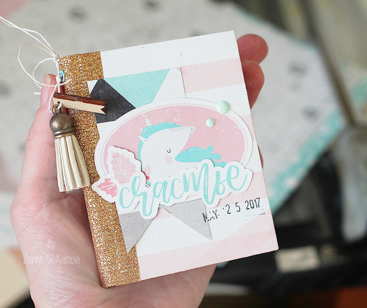 Мой миник помещается в ладошку, чтобы быть точной его размеры 7,5*10 см, именно такого размера наши карточки из коллекции Hello unicorn.